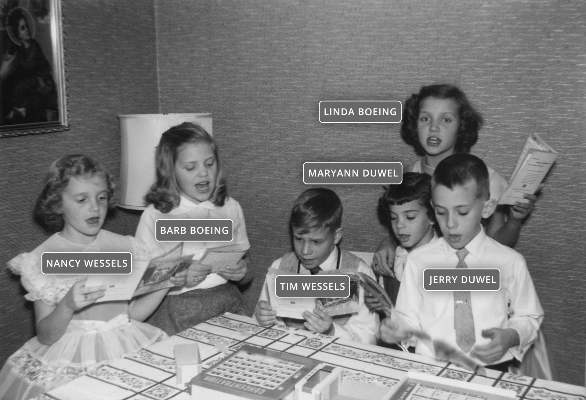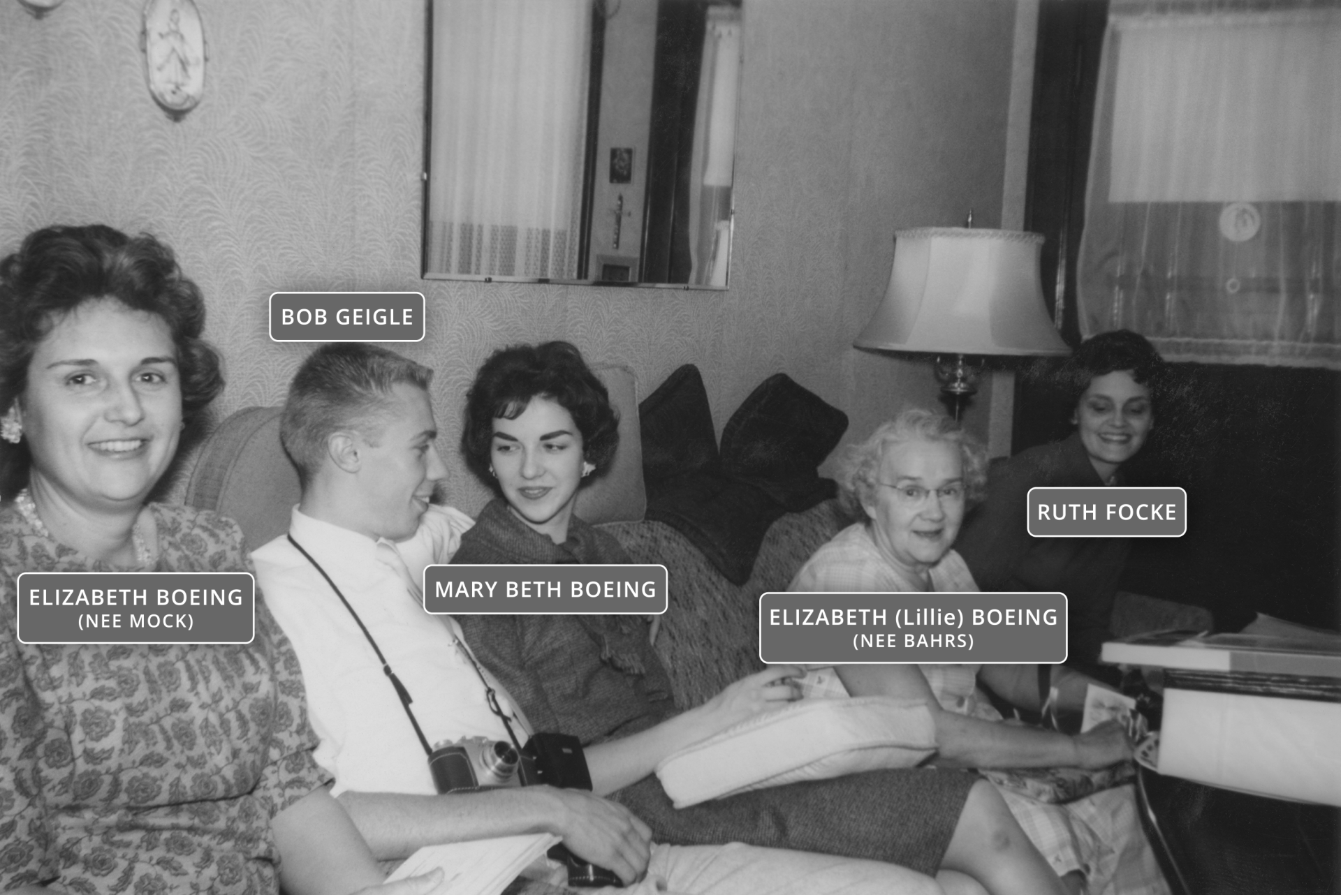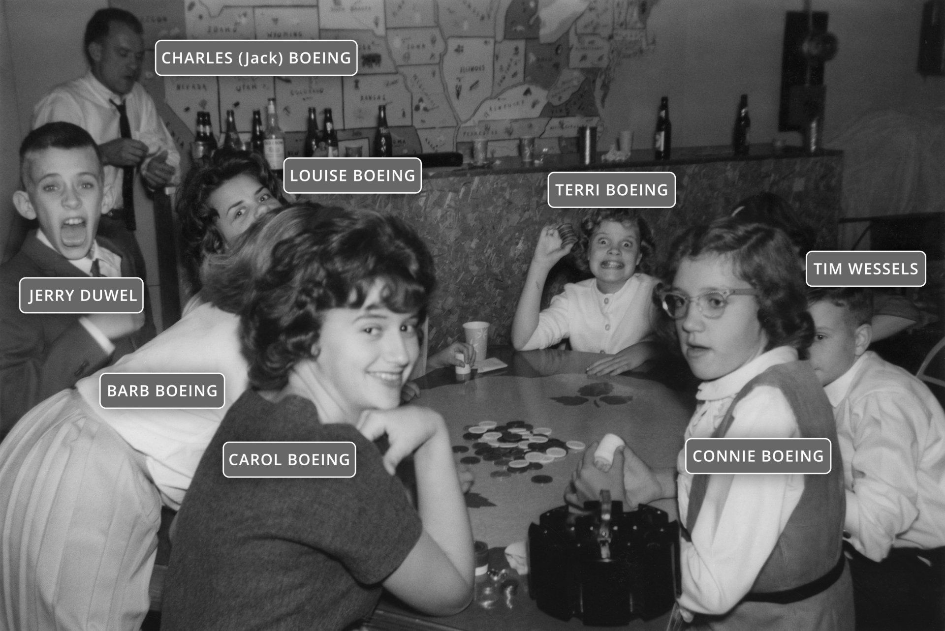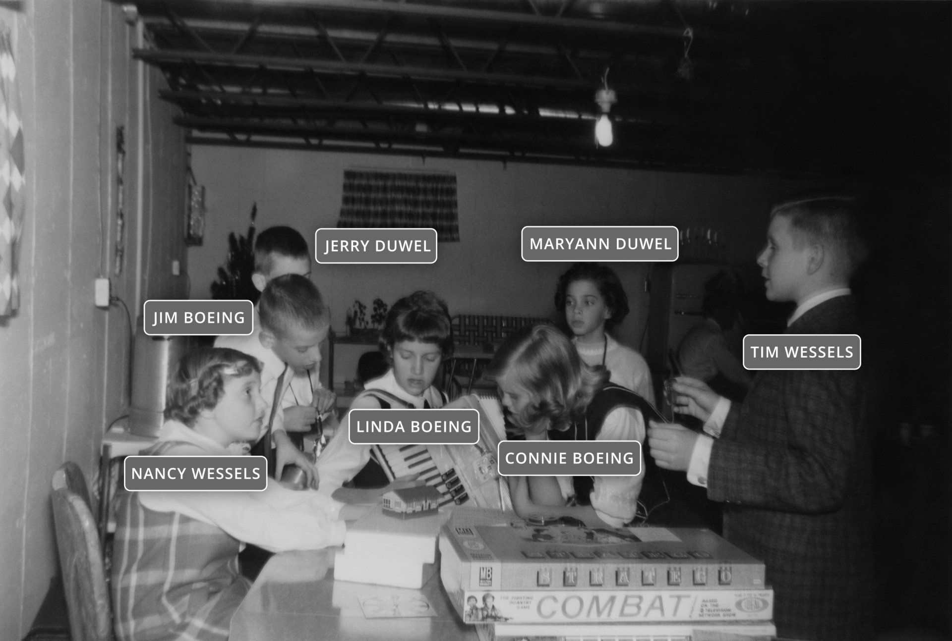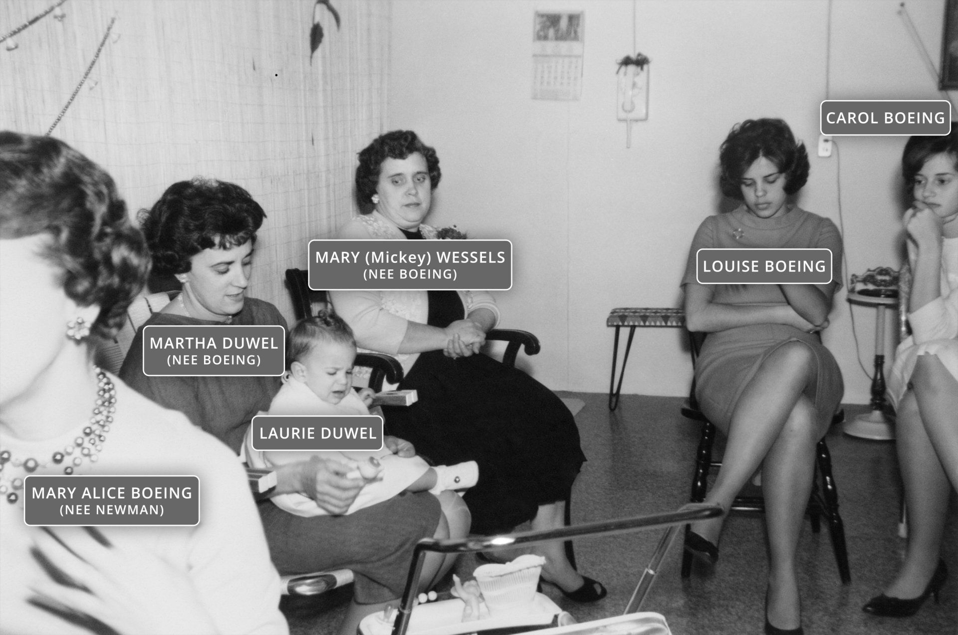 The Christmas 1960 photos were taken at the home of Bernard and Lillie (Bahrs) Boeing. The Christmas 1962 photos were taken at the home of Martha (Boeing) and Al Duwel. The Christmas 1963 photos were taken at the home of Bernice (Boeing) and Joe Bayer. The Christmas 1964 photos were taken at the home of Bernard (Pete) and Mary Alice (Newman) Boeing. Betty (Focke) Boeing shot all the photos.